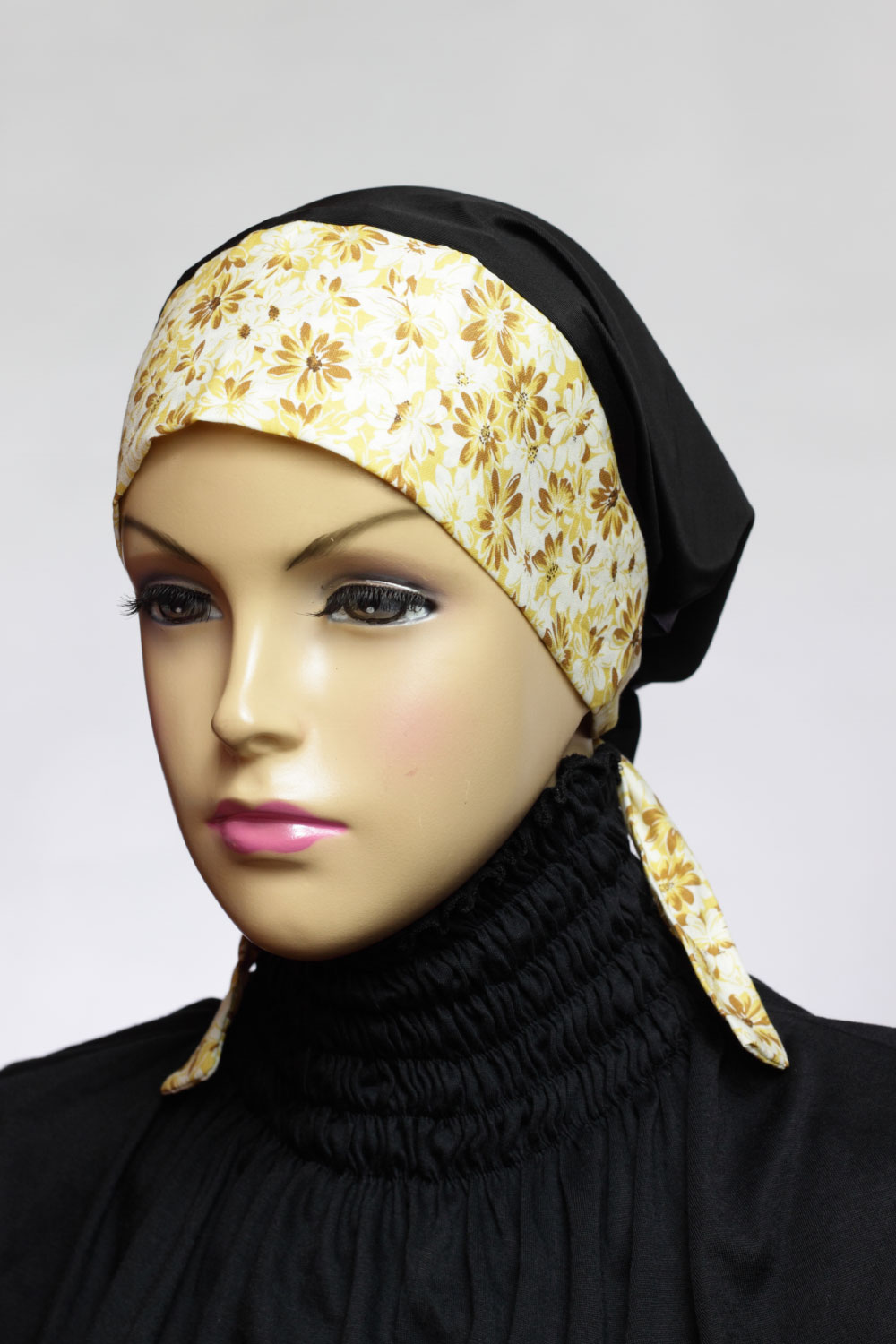 Description : Ciput berbahan spandex yang licin dan nyaman dikulit dikombinasikan dengan motif bunga pada bagian depan.