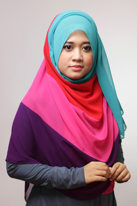 Description : Kerudung panjang paduan empat warna. Terbuat dari bahan ceruti (heavy silky crepe) yang lembut, halus dan bagus jatuhnya. Mudah dibentuk serta cocok dikenakan pada iklim tropis.