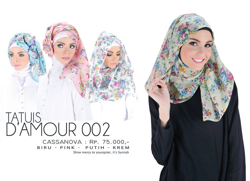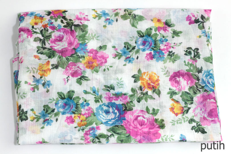 Description : Kerudung panjang bermotif bunga dari bahan cassanova dari Tatuis. Terdapat tiga pilihan warna-warna yang lembut, krem, pink dan putih.