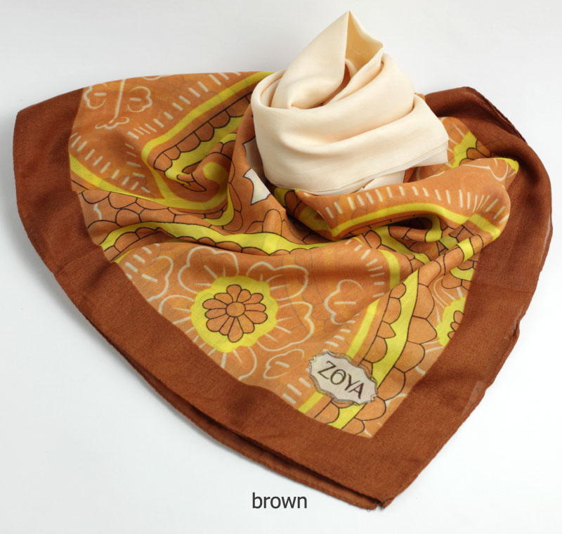 Description : Kerudung segiempat dari zoya dengan warna-warna yang menarik bertema floral.